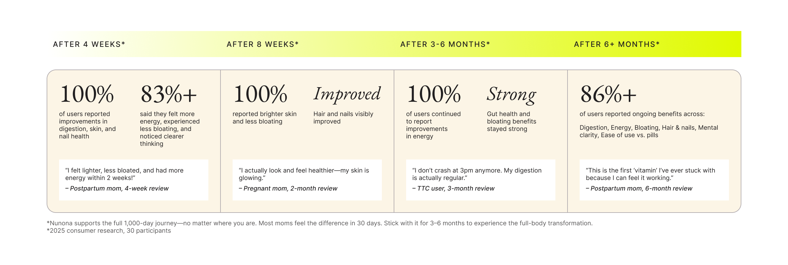 Our bites aren’t just another prenatal supplement. They’re a complete, dietitian-developed solution that harnesses the power of whole-food nutrition to support you and your baby at every stage.
